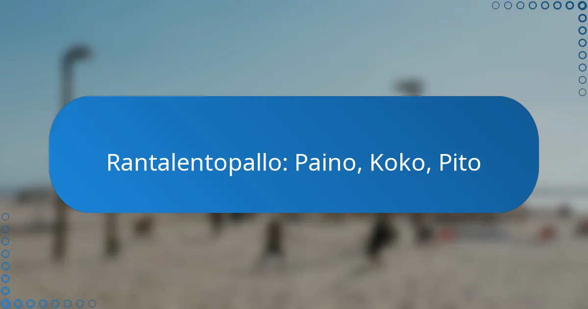 Rantalentopallon kilpailupallojen standardipaino vaihtelee 260:sta 280 grammaan, mikä on olennaista optimaalisen suorituskyvyn saavuttamiseksi. Näiden lentopallojen on myös täytettävä tietyt kokovaatimukset, ja niiden halkaisijan on tyypillisesti oltava 65-67 senttimetriä. Lisäksi rantalentopallon pito on ratkaisevassa roolissa pelissä, parantaen pallon hallintaa ja käsittelyä erityisesti hiekkaisissa olosuhteissa.