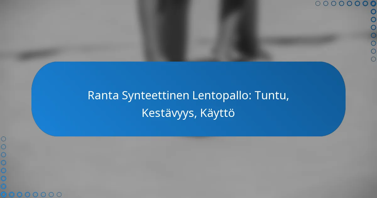 Rantalentopallon synteettiset pallot on suunniteltu tarjoamaan ainutlaatuinen tuntuma pelin aikana, ja niiden ominaisuuksiin kuuluvat pito, pehmeys ja yleinen suorituskyky. Pelaajat arvostavat usein näiden pallojen antamaa tuntoa, joka voi parantaa heidän pelielämystään.