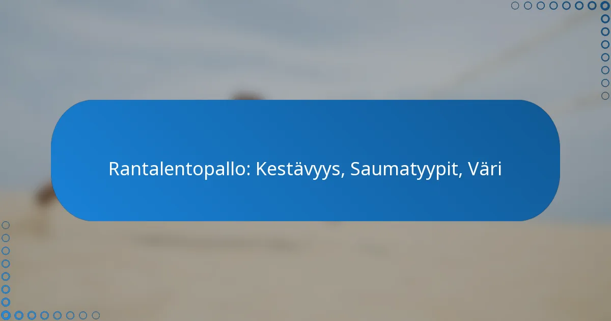 Rantalentopallon valinnassa on tärkeää ottaa huomioon kestävyys, sauman tyyppi ja väri. Materiaalit ja rakennuslaatu vaikuttavat suoraan pallon käyttöikään, kun taas käsin ommellut saumat tarjoavat parempaa suorituskykyä verrattuna koneella ommeltuihin vaihtoehtoihin. Lisäksi kirkkaan värisen lentopallon valinta voi parantaa näkyvyyttä, mikä parantaa pelaajien reaktioaikoja harjoitustilanteissa.