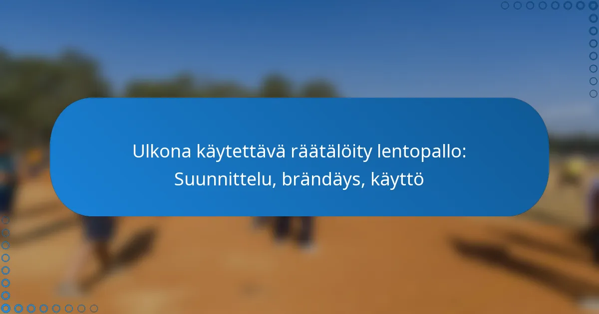 Brändäyselementtien sisällyttäminen ulkoisiin lentopalloihin on olennaista joukkueille ja organisaatioille. Tämä sisältää logoja, joukkueen värejä ja sloganeita, jotka edustavat brändin identiteettiä. Tehokas brändäys voi parantaa joukkuehenkeä ja tunnistettavuutta tapahtumien aikana.